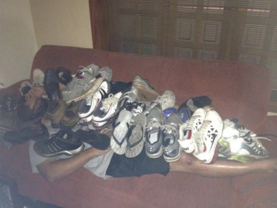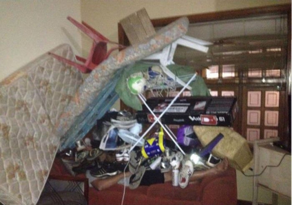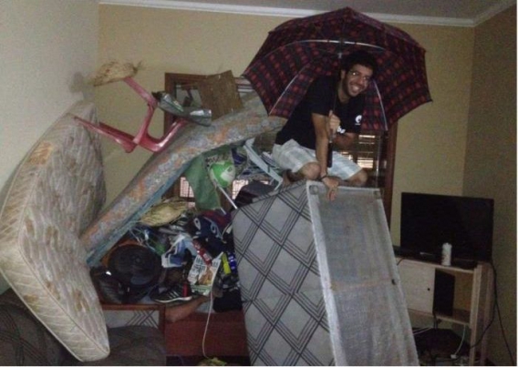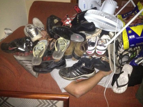 Pierwsza zasada każdej imprezy brzmi: "Nigdy nie zasypiaj pierwszy!". W miarę możliwości pozostań przytomny do końca. Nie ma nic gorszego, niż obudzenie się w takich warunkach, jak jegomość, którego za chwilę zobaczycie na zdjęciach. Ku przestrodze, bo w końcu trwa weekend!